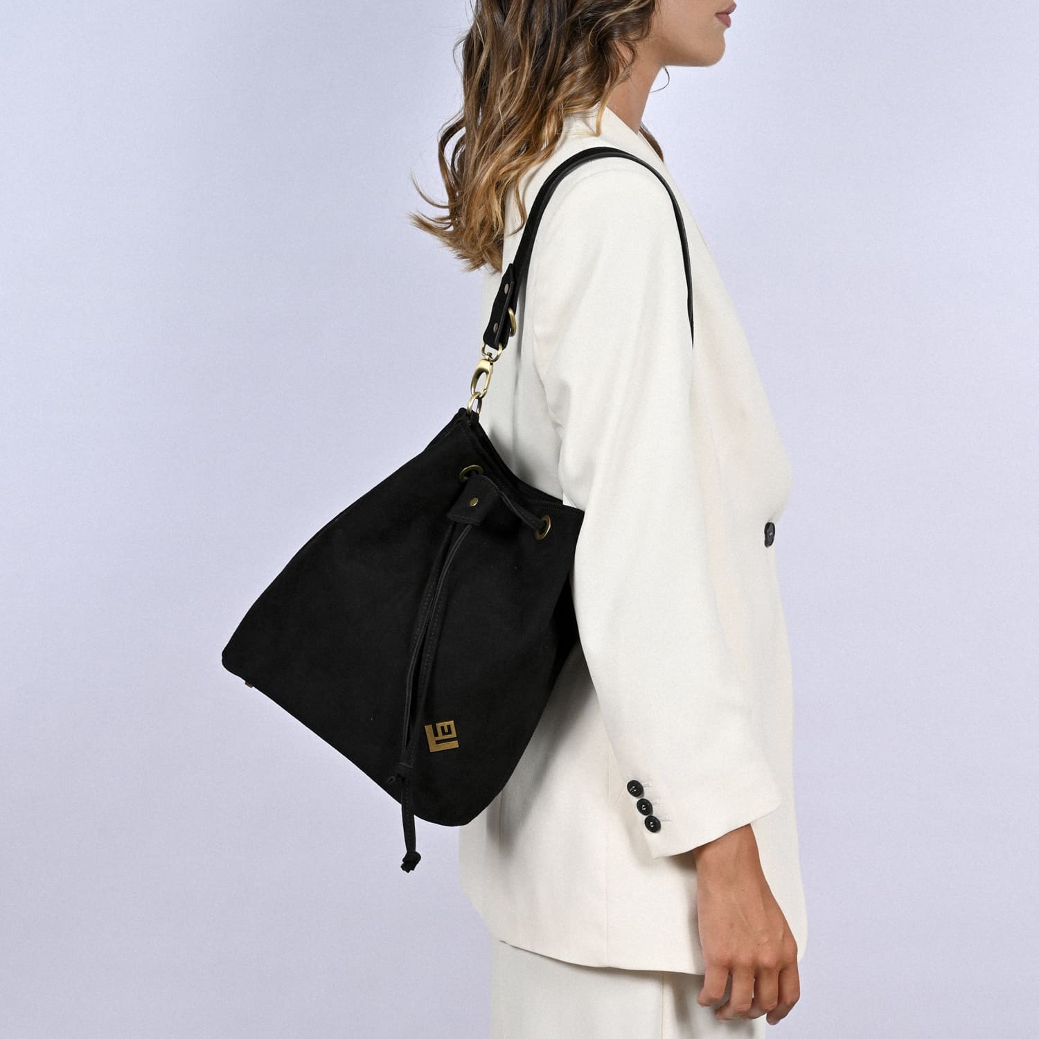 Καστόρινη Τσάντα Ώμου σε στυλ Πουγκί Lovely handmade Hypnotic Nomia Black σε Μαύρο χρώμα