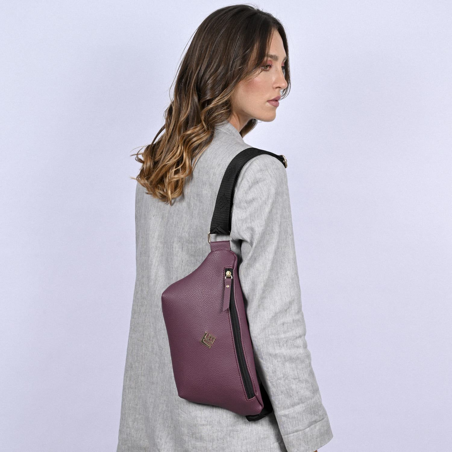 Τσάντα Μέσης και Χιαστί Lovely handmade Camelia Asti Bag Berry σε Μπορντό/Μωβ απόχρωση με δερμάτινες λεπτομέρειες