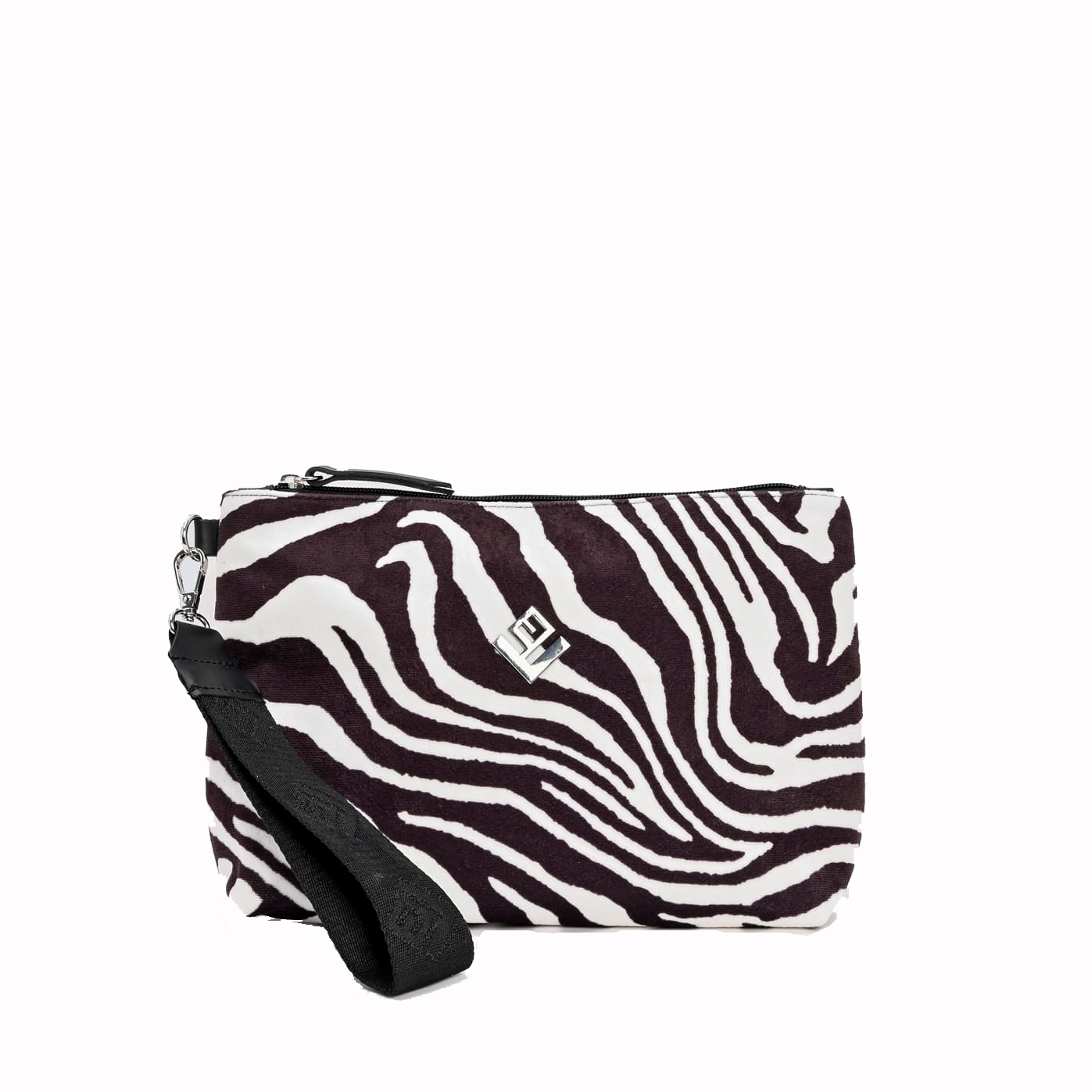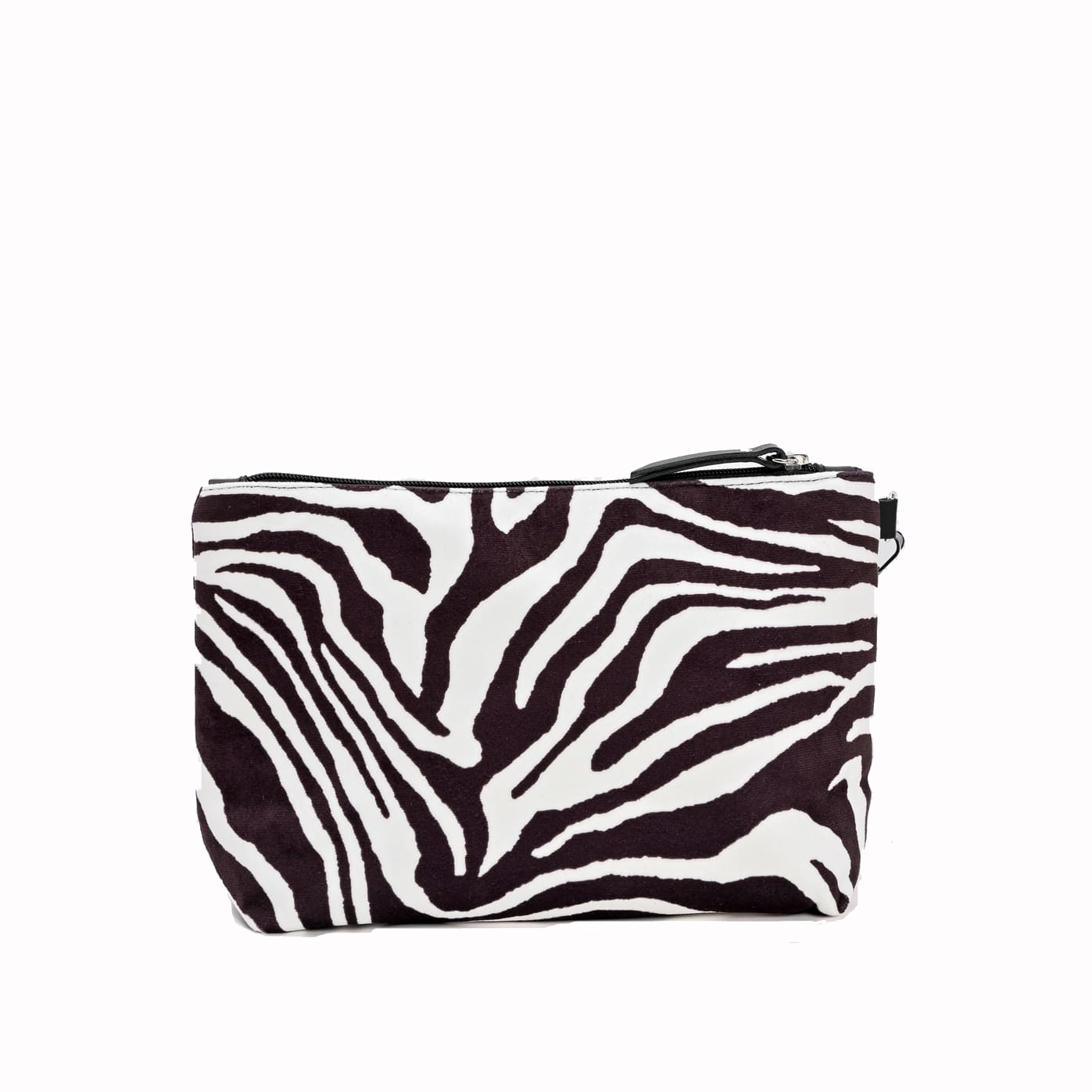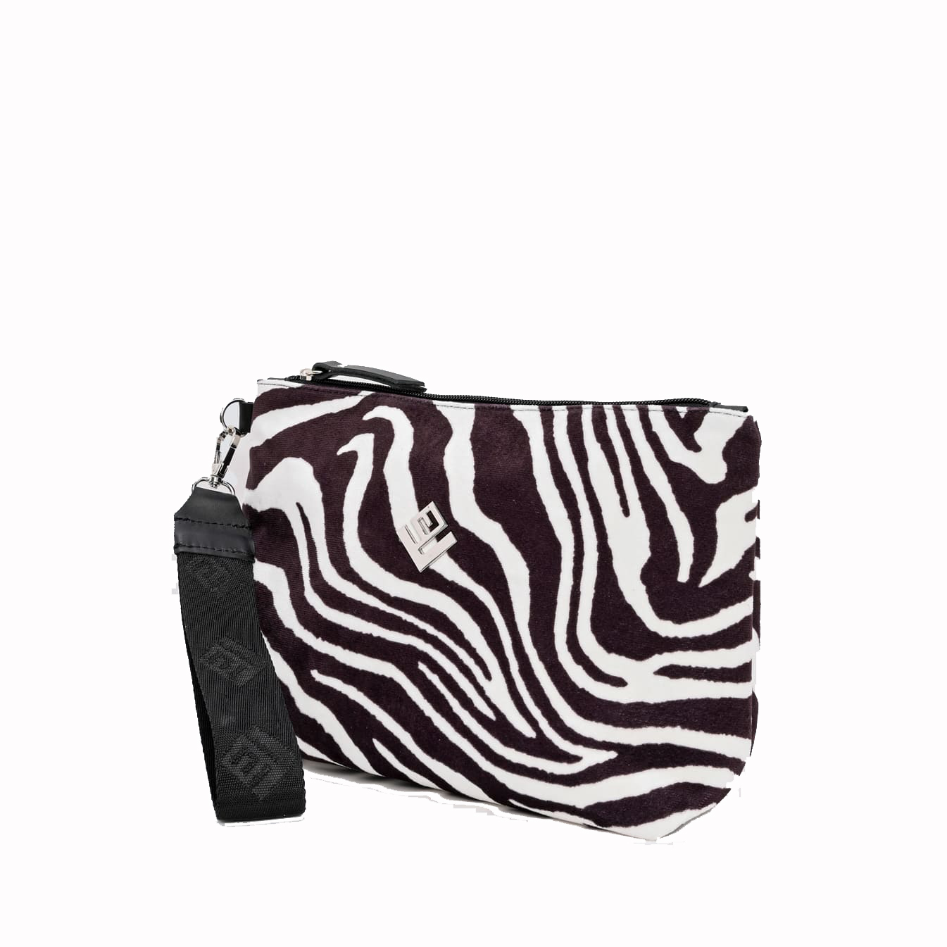 Τσάντα Χειρός Lovely handmade Necessaire Feral Zebra BW σε σε ασπρόμαυρη απόχρωση Animal free Wild Velvet Ζέβρα με λουράκι χειρός. Μια βελούδινη luxury επιλογή για τη συλλογή σας