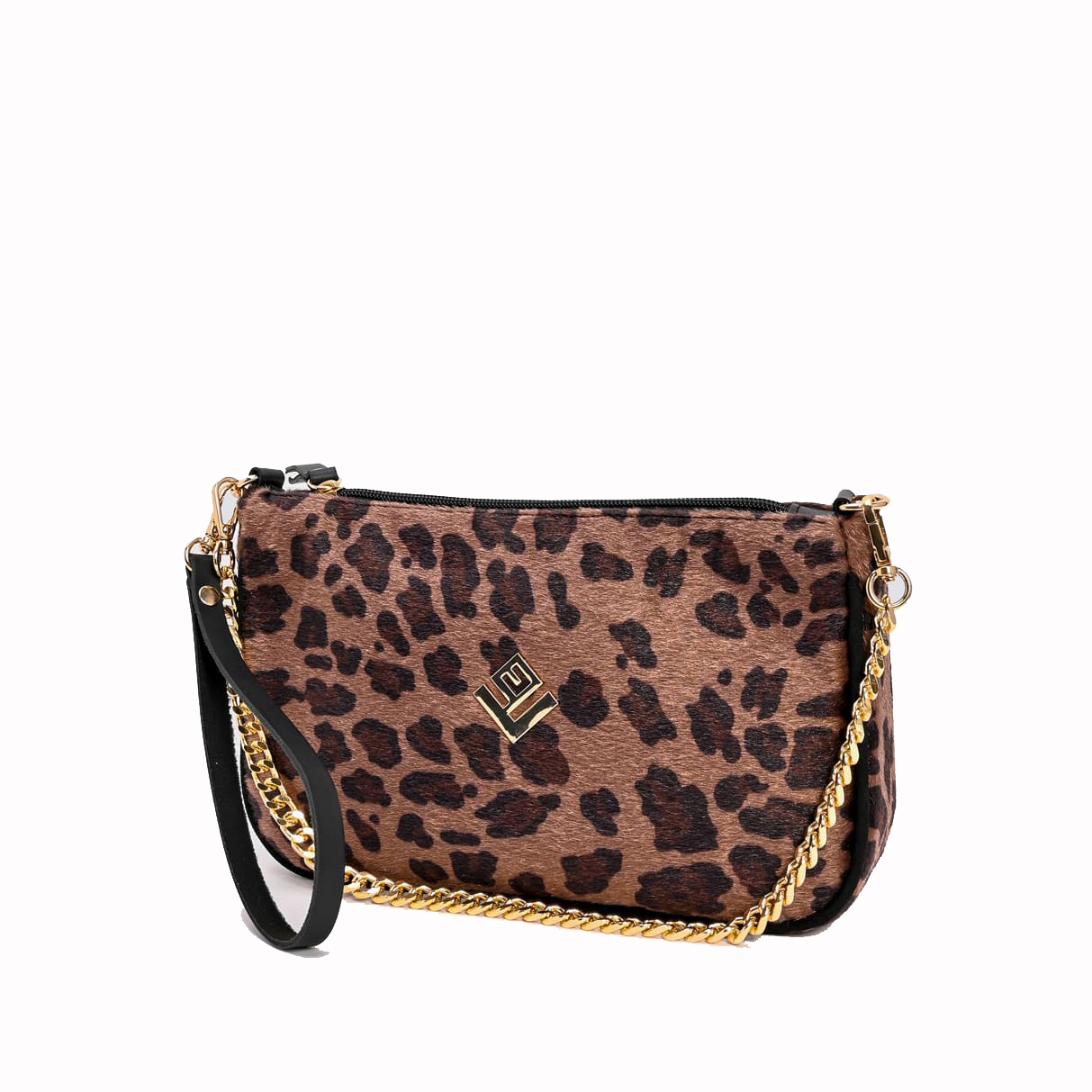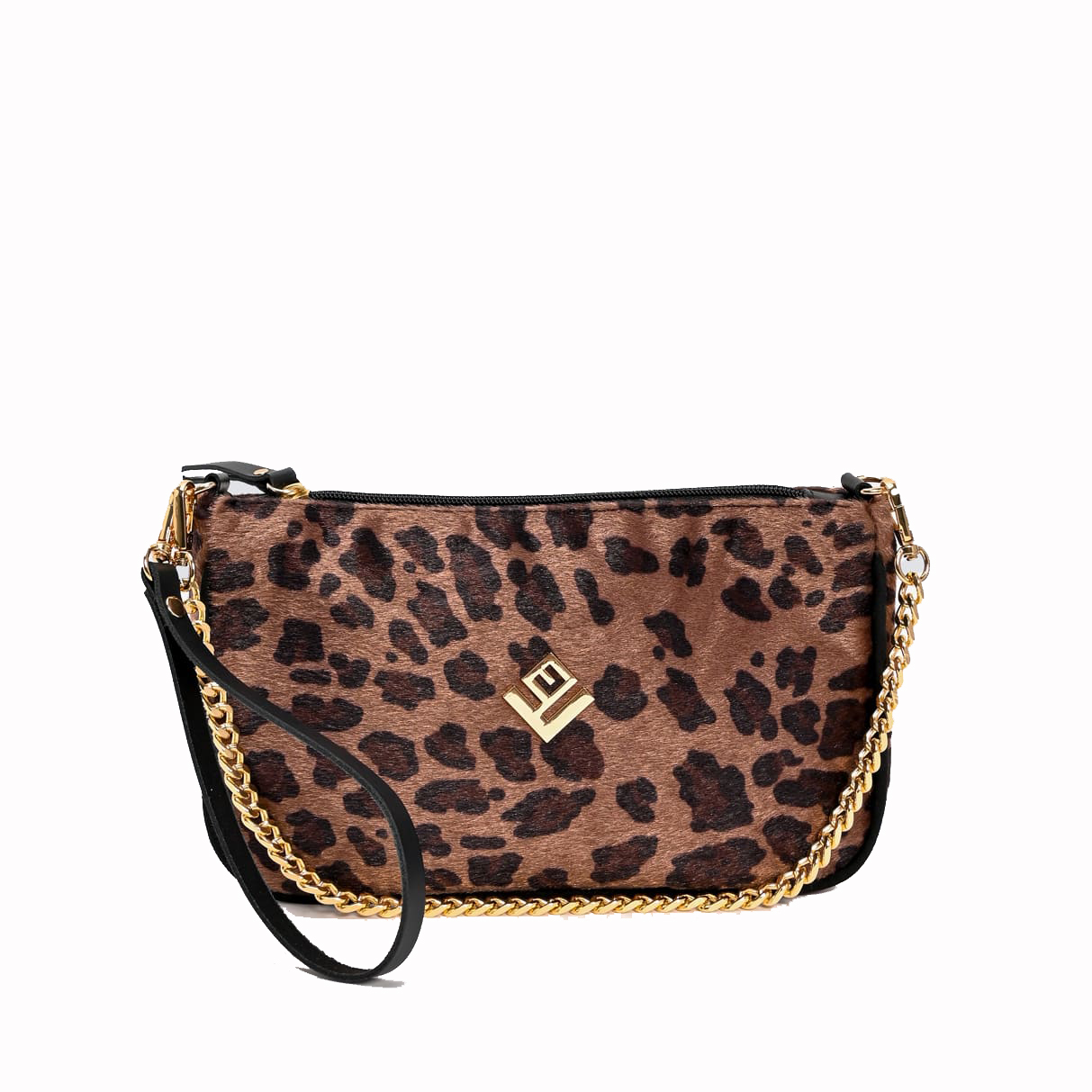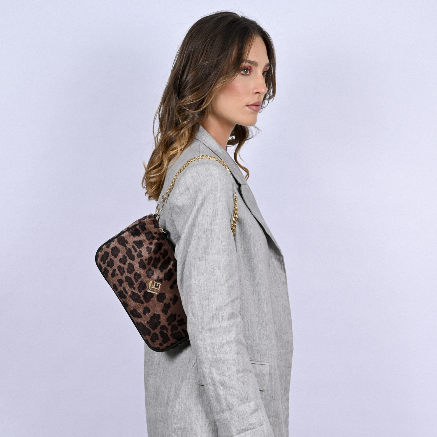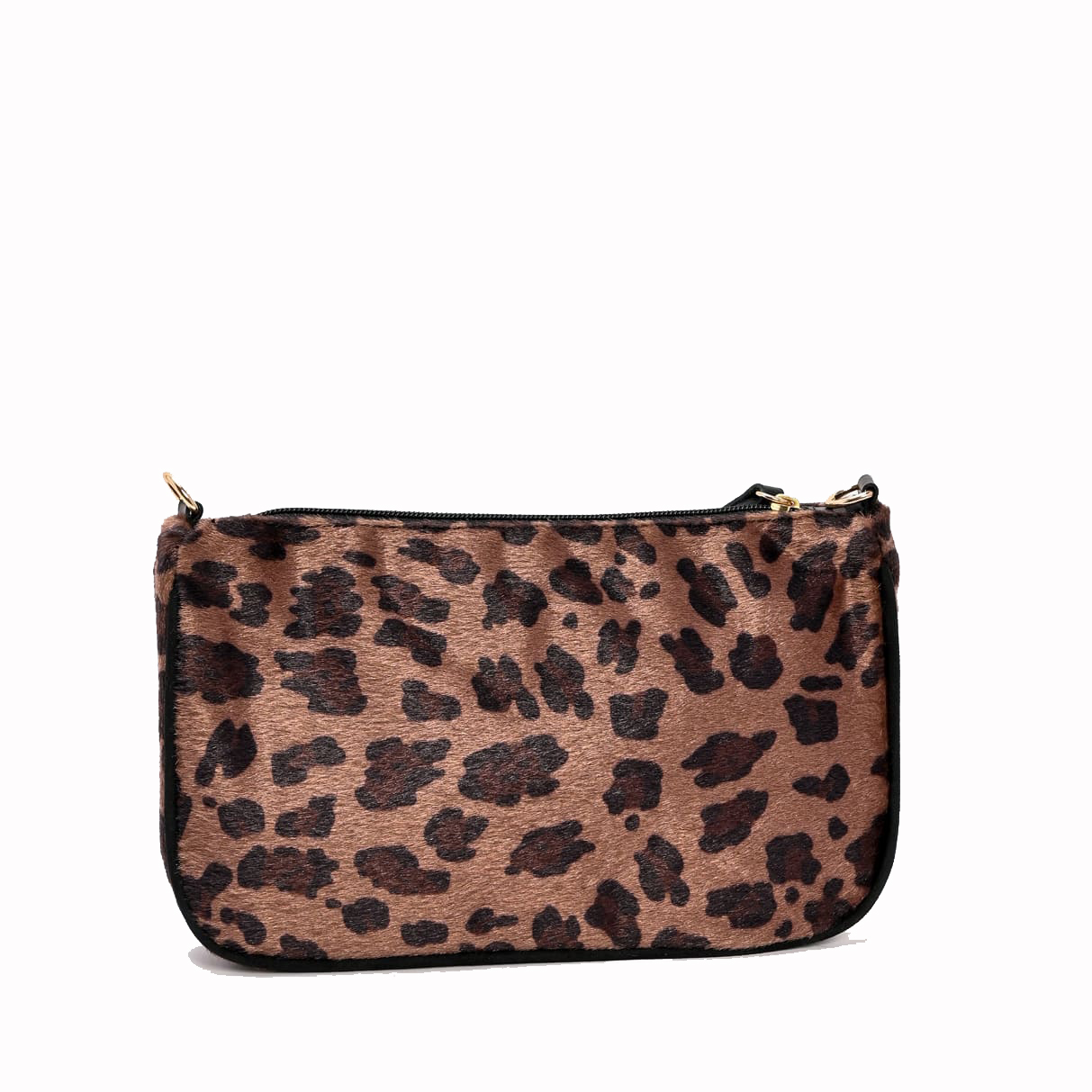 Τσάντα Ώμου και Χειρός Lovely handmade Caldera Large Feral Leopard σε Animal free Pony skin με μαύρο δερμάτινο λουράκι χειρός
