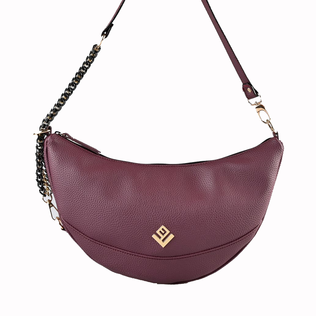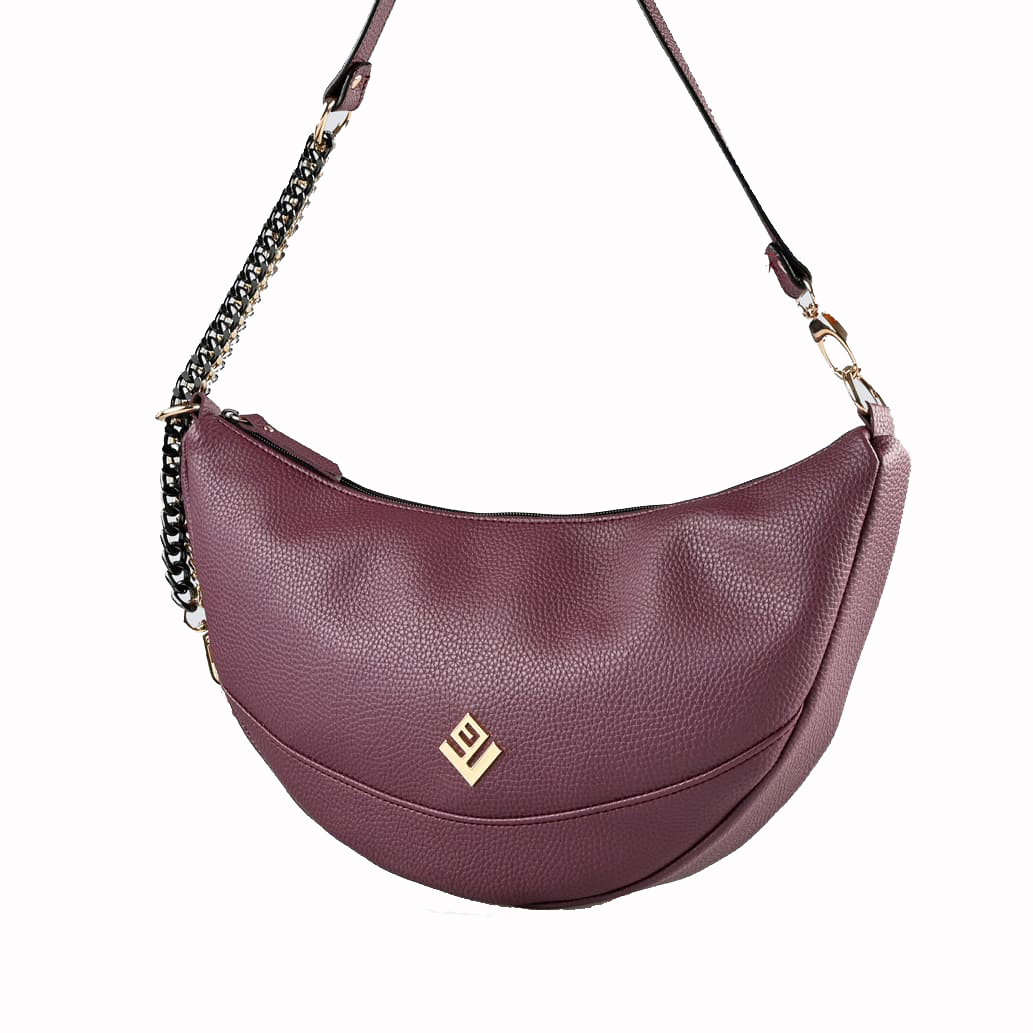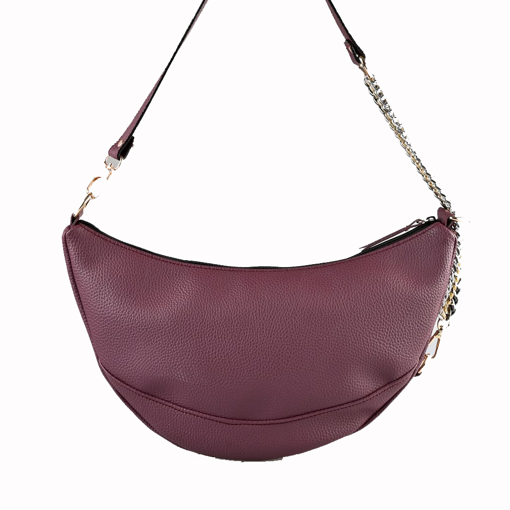 Τσάντα Ώμου και Χιαστί Lovely handmade Harmonia Asti Bag Berry σε Μπορντό/Μωβ απόχρωση με δερμάτινο ιμάντα και 3 αλυσίδες ( Silver, Gold, Rose gold)