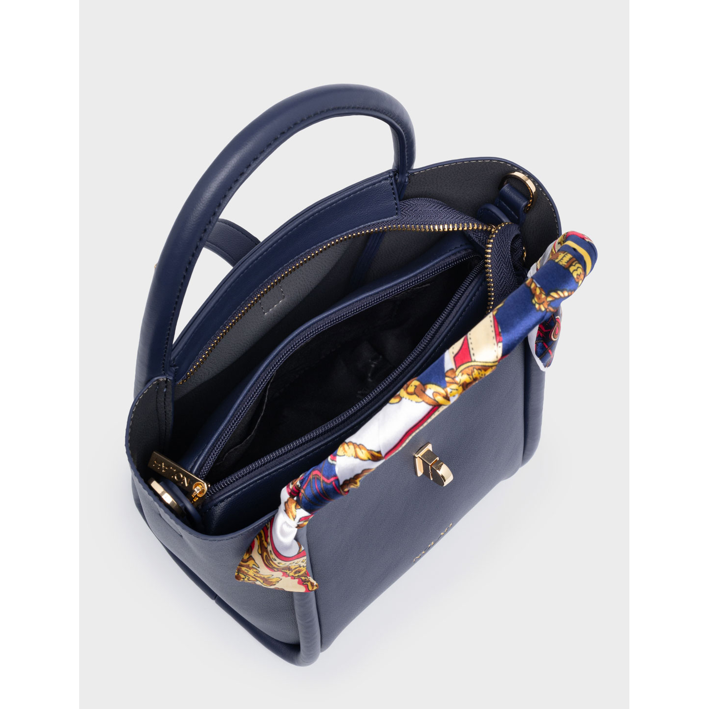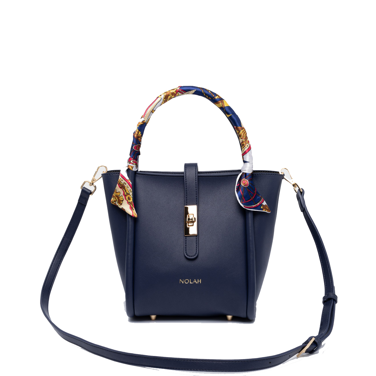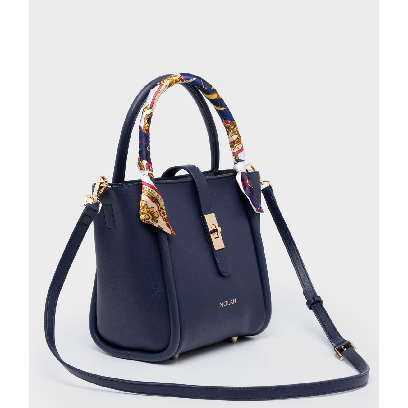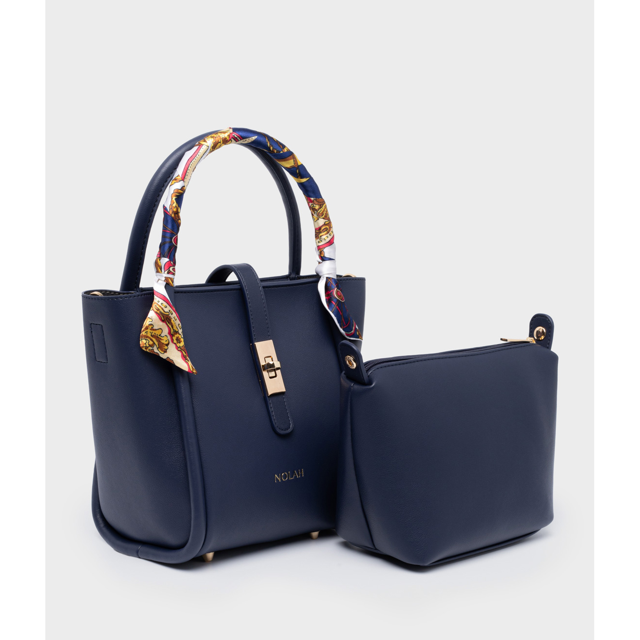 Τσάντα Χειρός και Χιαστί Nolah Bridgerton Blue Light Gold σε Μπλε χρώμα και ματ φινίρισμα διακοσμημένη με χρωματιστό Φουλάρι Δώρο