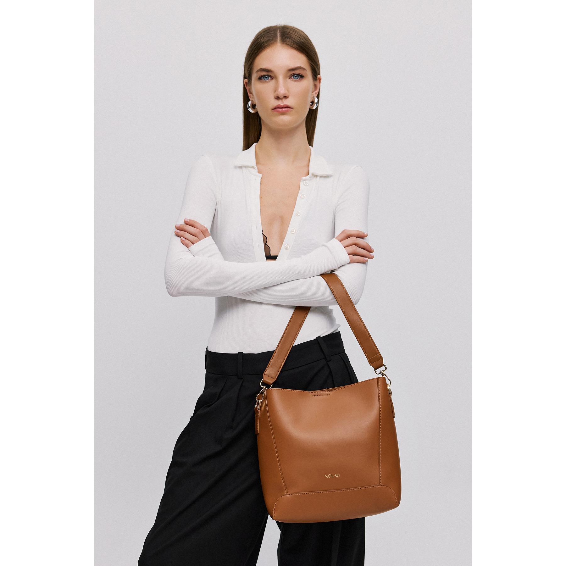 Τσάντα Ώμου και Χιαστί Nolah Helios Brown σε Καφέ ταμπα χρώμα και ματ φινίρισμα